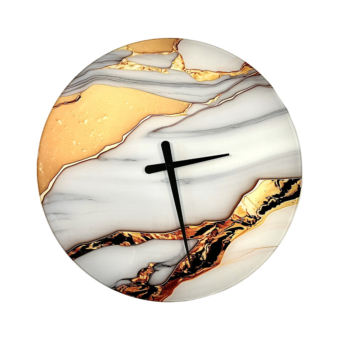 Orologio da Parete in Vetro Made in Italy - Effetto Marmo e Oro